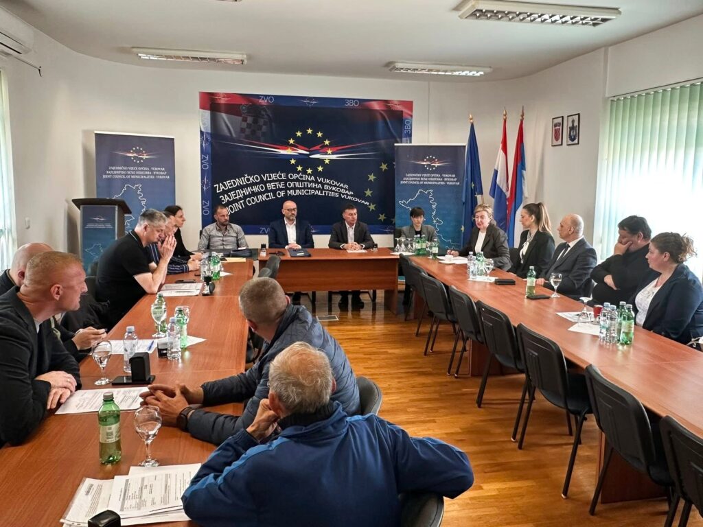 Vukovar, 20.04.2026. - Predsednik Zajedničkog veća opština Vukovar Dejan Drakulić potpisao je ugovore o dodeli finansijskih sredstava za kapitalne donacije sa predstavnicima opština i veća srpske nacionalne manjine sa prostora delovanja ZVO-a.